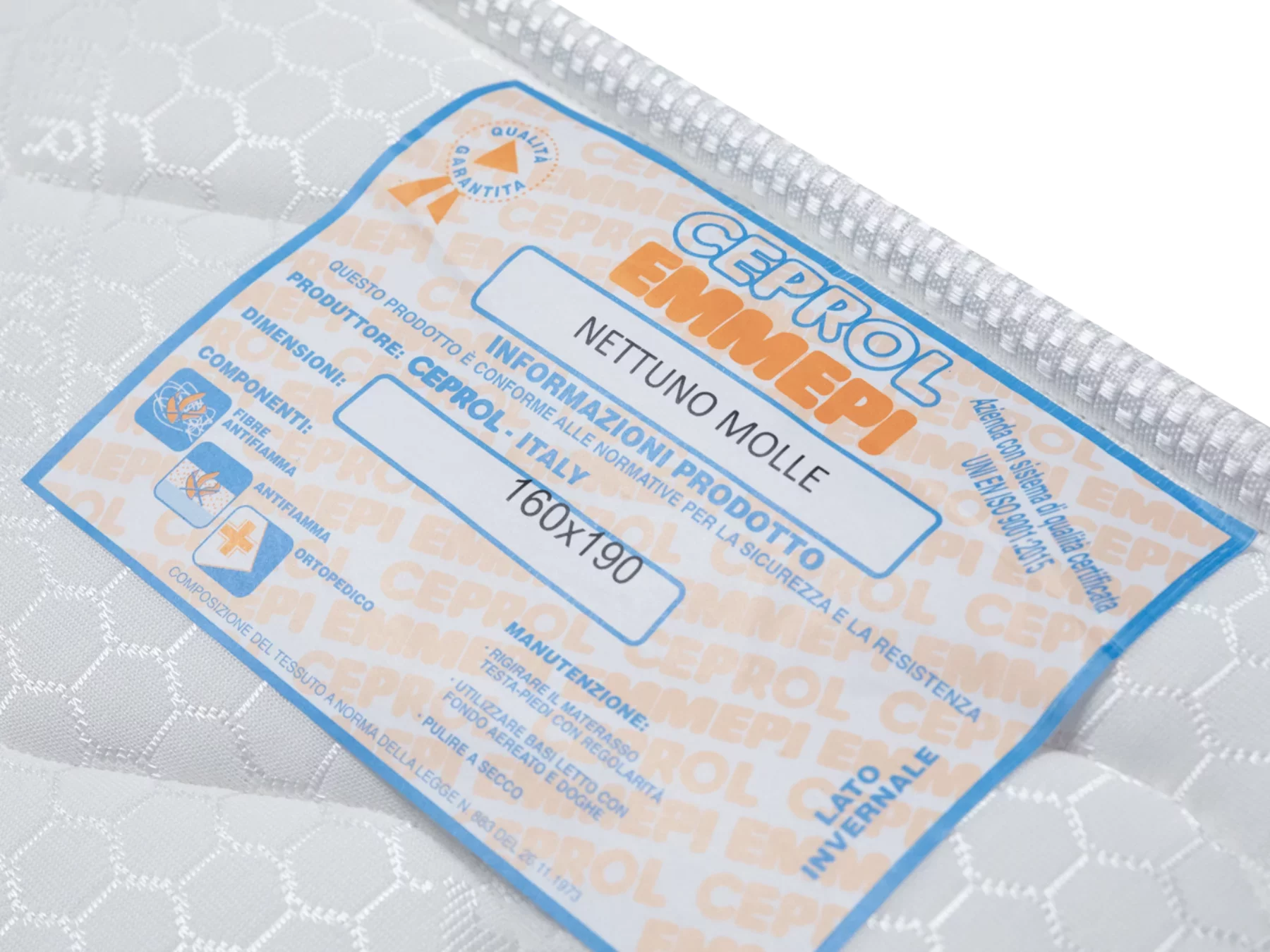 Il materasso Nettuno Ignifugo con molle Bonnell combina la sicurezza del tessuto tecnico ignifugo certificato con il supporto robusto e affidabile delle molle tradizionali. Perfetto per strutture ricettive che richiedono resistenza e conformità alle normative antincendio.